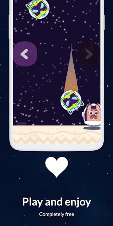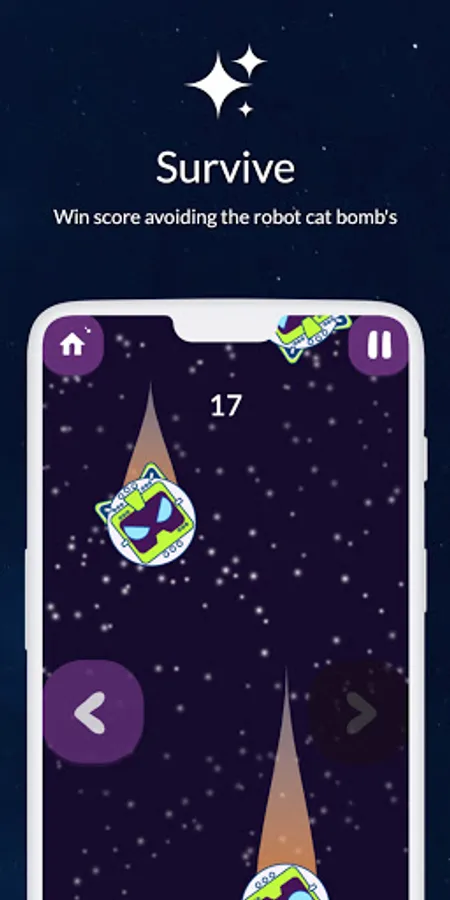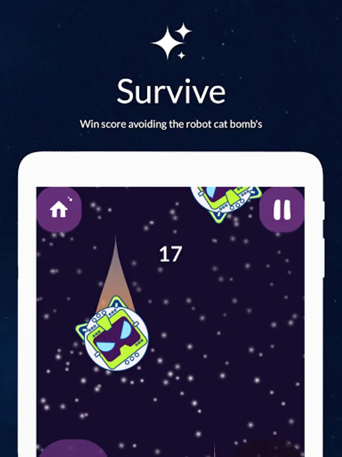 It is a casual game where Doggy our protagonist must avoid the robot bombs of the evil space cat.