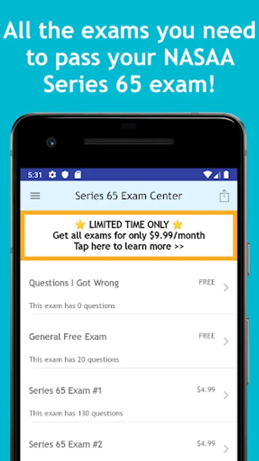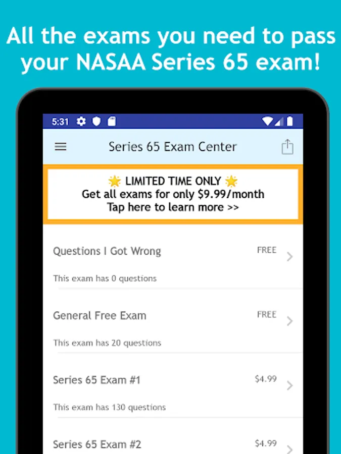 Pass your NASAA Series 65 exam with the help of the new Series 65 Exam Center app!