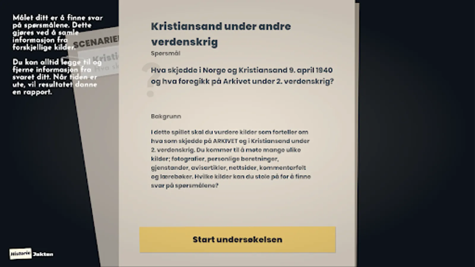 In this game, you will evaluate sources that tell about what happened at the ARCHIVE and in Kristiansand during the Second World War. You will come across many different sources; photographs, personal accounts, objects, newspaper articles, websites, comment fields and textbooks. What sources can you rely on to find answers to the questions?