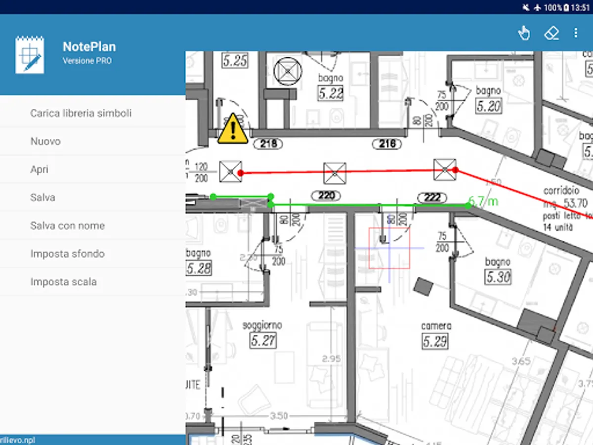 It also allows you to make scale measurements within the floor plan and to insert routes to obtain the measurement.