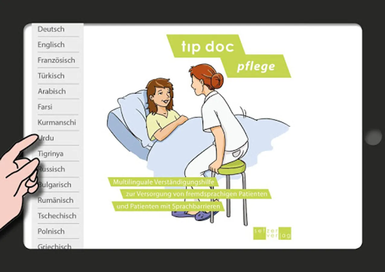 An interpreter is often ordered for crucial medical explanatory talks and documents. In everyday nursing care, however, it is often the short terms that are missing and for which there has been no far-reaching solution until now.