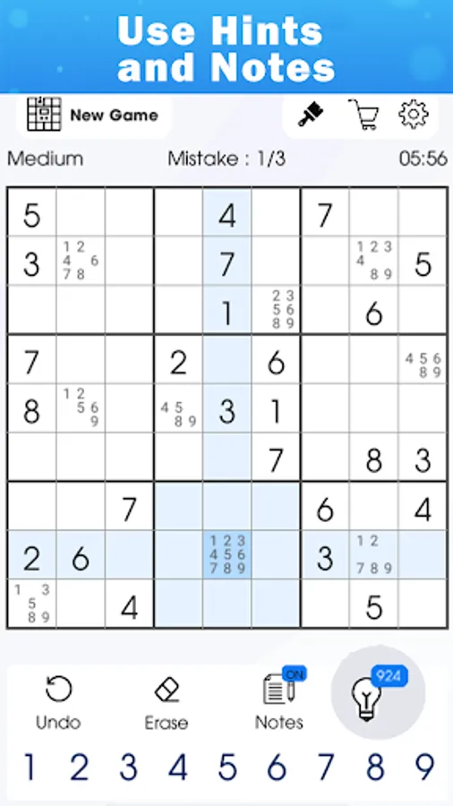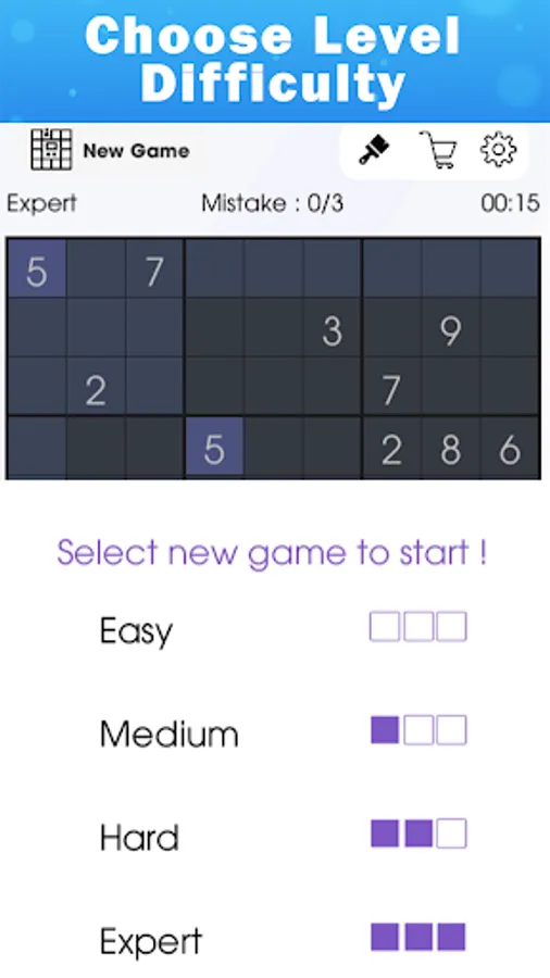 Sudoku offline - Sudoku puzzle, Brain game, Number game is a kind of cool math games, and it has many different Sudoku puzzles and contains four different levels: Easy, Medium, Difficult, and Expert. Download Sudoku - Sudoku puzzle, Brain game, Number game now and choose the appropriate level for you!