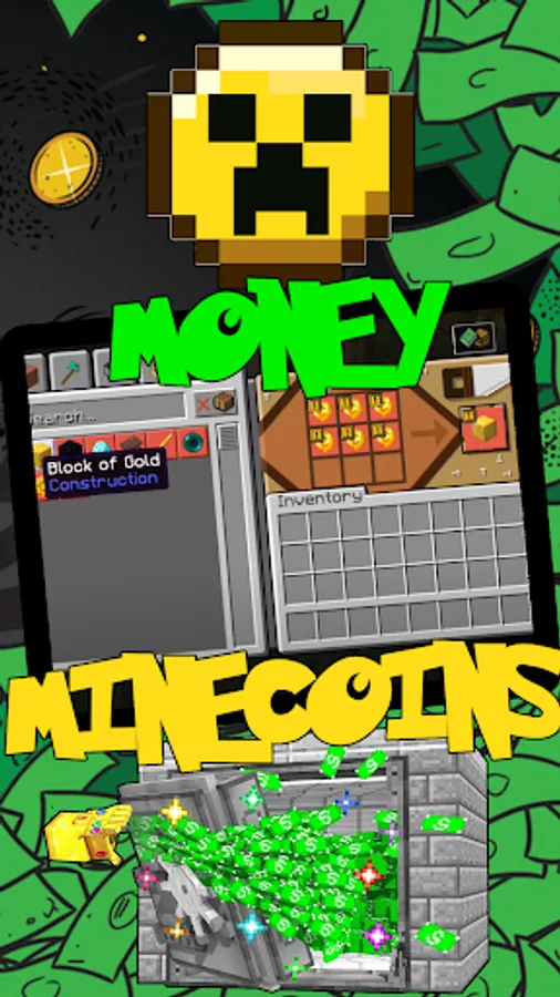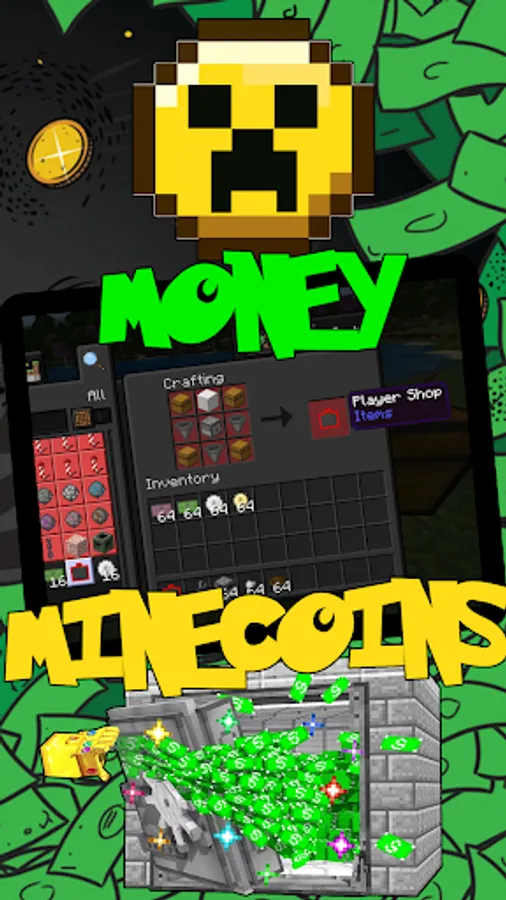 The sandbox game often becomes boring if you focus all your energy on survival, it is much more interesting to explore the world of mods, this texture pack will change the currency of the inhabitants from emeralds to coins. To craft coins, you do not need much time, the deals remain the same, but the items that you can craft or get have become much larger. In order to mint coins, you do not need a workbench, but an exchange station. In survival mode, it is quite difficult to craft the entrance to the dungeon because you need a piece of obsidian, as well as an ingot of iron. Visit caves in search of ore. Fairs or creative mode will allow you to avoid the routine, but with this mod at the exchange station you can buy all the necessary resources. We wish you a pleasant game and cool adventures with minecraft money addon. The civilized world has already switched to a virtual crypto currency, in minecraft you can also mine it even without video cards and equipment. Real banknotes, banknotes and coins in minecraft bedrock will be super detailed and will serve as an educational game for everyone who wants to study economics not at school, but in the game. There are several types of denominations of banknotes and each has its own value and rarity. Together with your friends you can create your own money pyramid and become a business shark. This is essentially a cool add-on for everyone who likes to play mini role-playing games on online servers. The money mod will not replace vanilla items and blocks, but only adds new stacks of coins for real businessmen. Our mod supports multiplayer and will allow you to change your skin to a rich man with a gold chain in mcpe.
