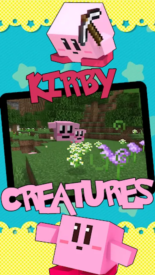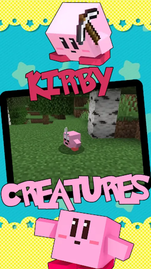 Kirby can be randomly found in Survival Mode while traveling through the biomes of your favorite game. By taming a kirby with a diamond, you can explore the world with a new friend. Inspired by super smash bros ultimate, you will get kawaii mobs, unique movement and attack animations of this mob, as well as nice sounds. Good mood, as well as new emotions from survival. A young spherical pink creature - kirby, one block in size. It usually inhabits a peaceful five-pointed star planet called a star. But do not rush to rejoice this peaceful mob after you touch it can equip a sword and armor. By adding a pink friend to your map, you can feel the platform game. In survival mode, Kirby is able to run, jump, attack monsters, travel through biomes, solve puzzles and fight bosses along the way. The main superpower is to inflate yourself with a stream of air and fly around the map.