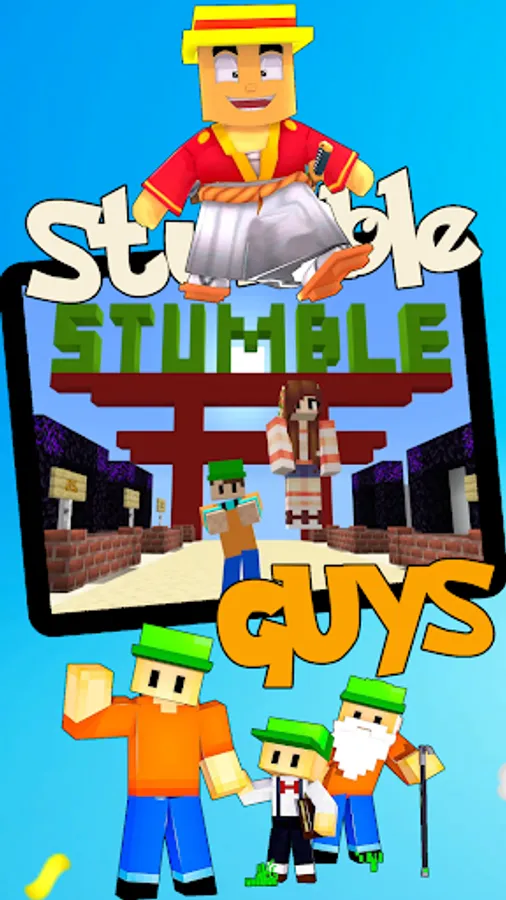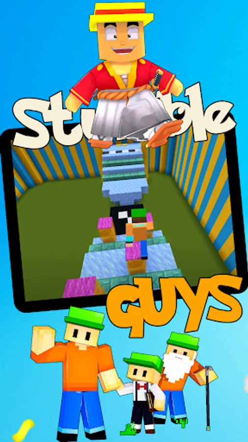 Explore the world of an online multiplayer team based survival sandbox game. The mini game will allow you to play knockout with your friends! Go through the rounds fighting the growing chaos in the biomes of your favorite game. You will run to race with rivals, all sorts of obstacles and traps, a royal battle with other players. Unbelievably bright textures of skins, funny game physics, Lots of different levels for parkour competitions. Knock down opponents on your way, Becoming a champion you will get an unforgettable experience from the mcpe game. Now you do not need to find something to do in the game, fun and running will not stop as soon as you download stumble guys! Becoming popular among guys and in our universe stumble minecraft.