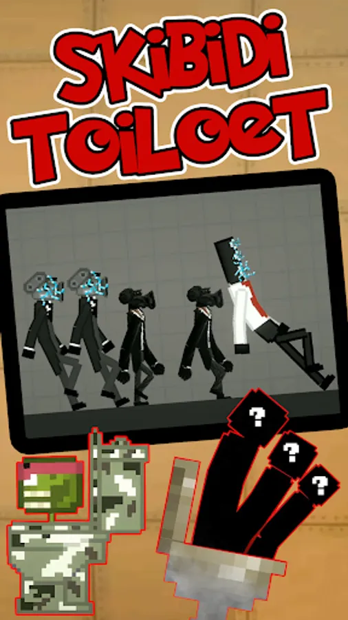 Skibidi toilet mod for Melon Playground is a launcher application that allows you to install skibidi toilet, cameraman mod melon, TvWoman, agents, g-man skibidi, Titan TVman, Titans speakermen and many others into the game!