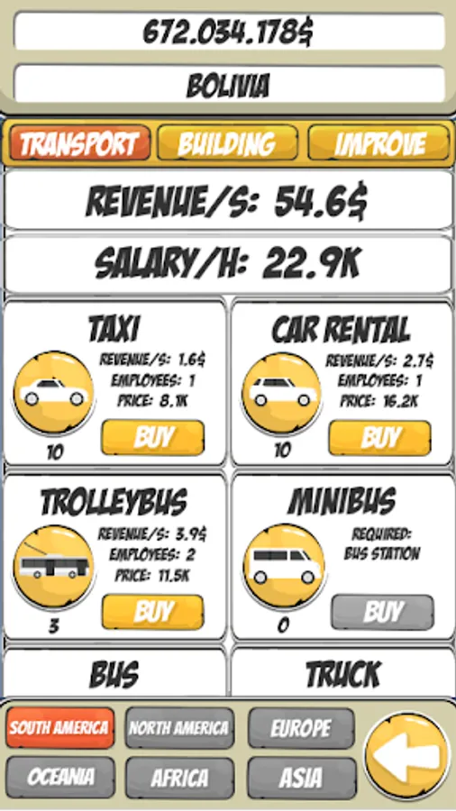 Become the owner of your own transport company, buy transport and build buildings to gain access to the new. Work and improve your skills and skills of your employees. Discover new countries and continue to develop in them. Get access to new continents, becoming a world-class company.
