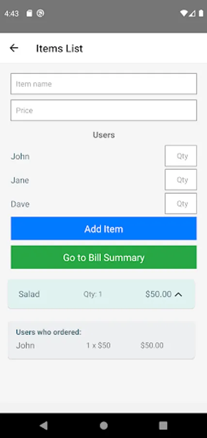 The user interface is simple and easy to navigate, so you can quickly and efficiently input all of the necessary information, take a snapshot of your bill, and generate the comprehensive PDF. The app provides a clear and concise summary of each user's order, so you can see exactly what each person ordered and how much they owe.