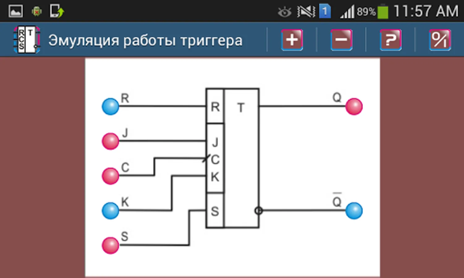 The application is designed for the purpose of studying and classifying digital devices of sequential type, the principles of their functioning, conventional graphic symbols, truth tables, input and output signals, as well as the research work of sequential units in static mode. It may be useful to teachers of technical universities, students of the digital circuitry, as well as for those who want to self learn the basics of digital electronics.