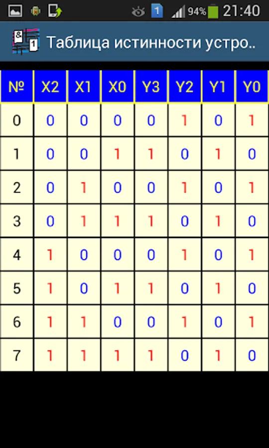 - The possibility of applying to the input circuit of an arbitrary combination of arguments X2, X1 and X0 in a static mode;