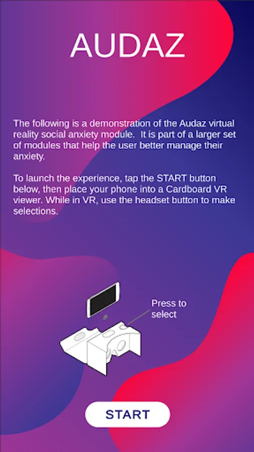 This is a demo of the Audaz virtual reality social anxiety module. It is part of a larger set of modules that help the user better manage their anxiety.