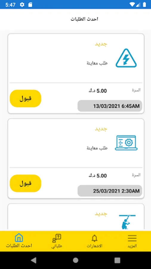 تطبيق شامل هوم سيرفيسز للفنيين والمقاولين لمتابعة طلبات العملاء