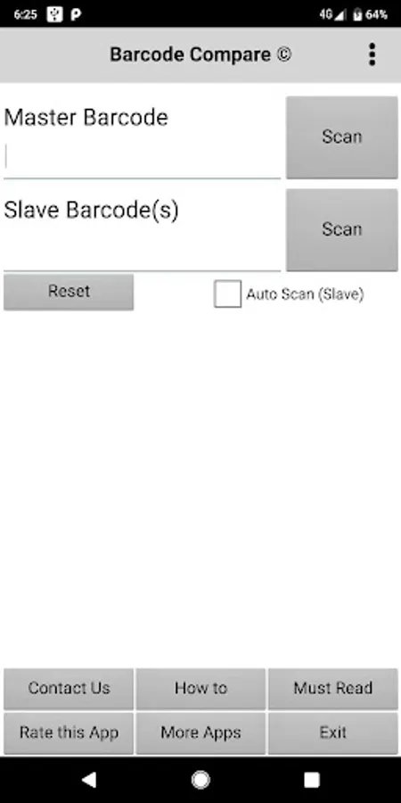 The Master Barcode is the main barcode that the slave barcodes are compared with. Start by scanning a Master Barcode and then scan the slave barcodes. If the slave barcodes are identical to the Master Barcode, you will get a valid beep, otherwise an invalid beep.