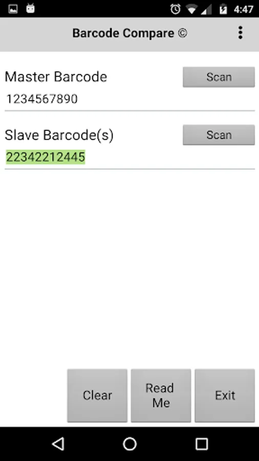 The Barcode Compare © App is simply a barcode comparison checker or barcode “matcher” which allows you to compare scanned barcodes with the Master Barcode.