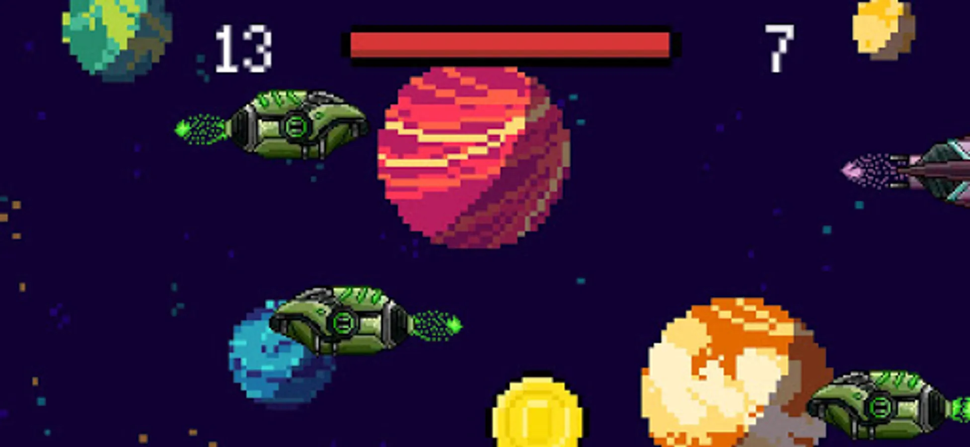 Destroy spaceships by clicking on them with your finger! Each game is given 30 seconds of time and 10 starting points. For every 5 ships a bonus, a coin! The game will end when time or points run out! Don't miss the ships! To battle!