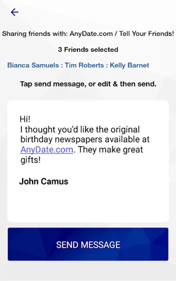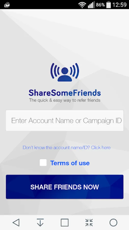 Here’s how it works: Each participating business or organization creates a unique account name and provides it to customers. After downloading the app, customers enter the account name, select some friends from their contact list, edit a personalized text message and then share it with those friends. Talk about simple!