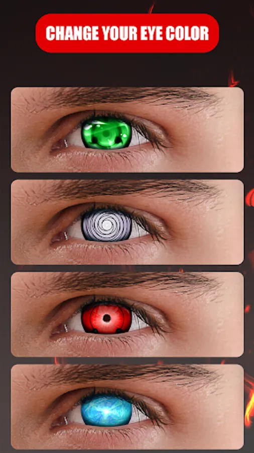 Edit your photos in a fun way and join the world of anime and Sharingan eyes! Install this eye color changer app and alter your look! See how you would look like with contact lenses!