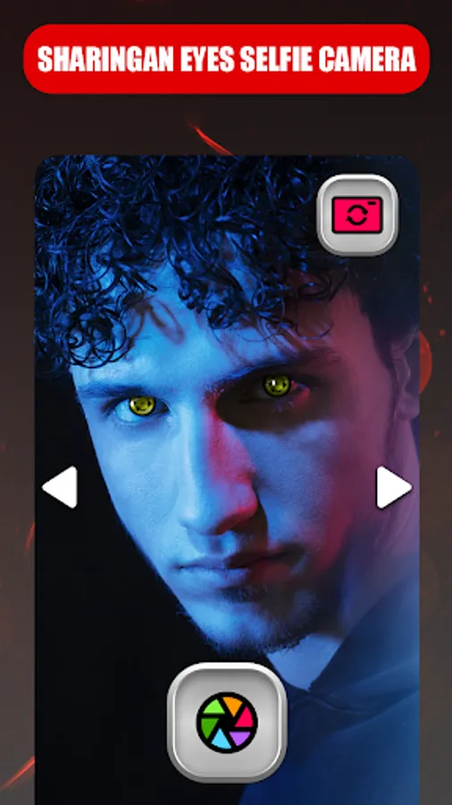 Do you want to wear red contact lenses? Create such a fantastic effect with this Sharingan eye editor for pictures. Make a photo montage that looks realistic with Sharingan camera effect. Explore all the possibilities with this great picture editor for anime fans! Turn on your Sharingan camera and take selfies with different eye colors and face masks! Unleash your creativiti with the eye color changer and share your anime photos with friends. Use the anime selfies as cool profile pictures.