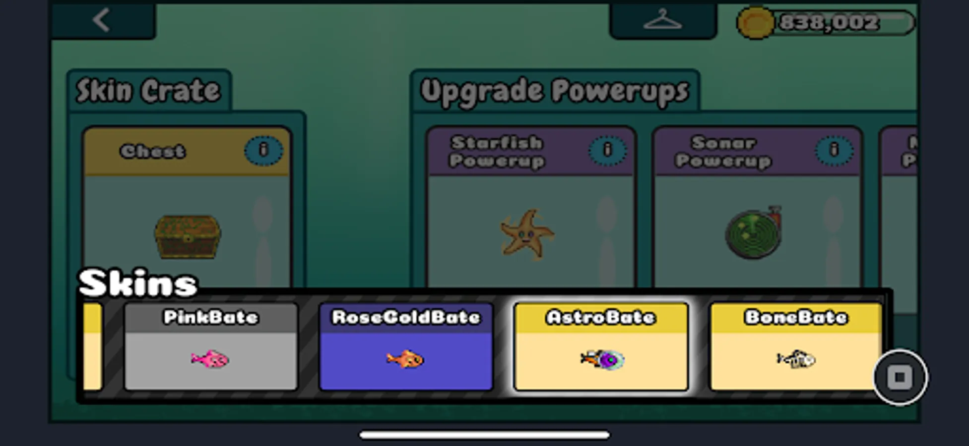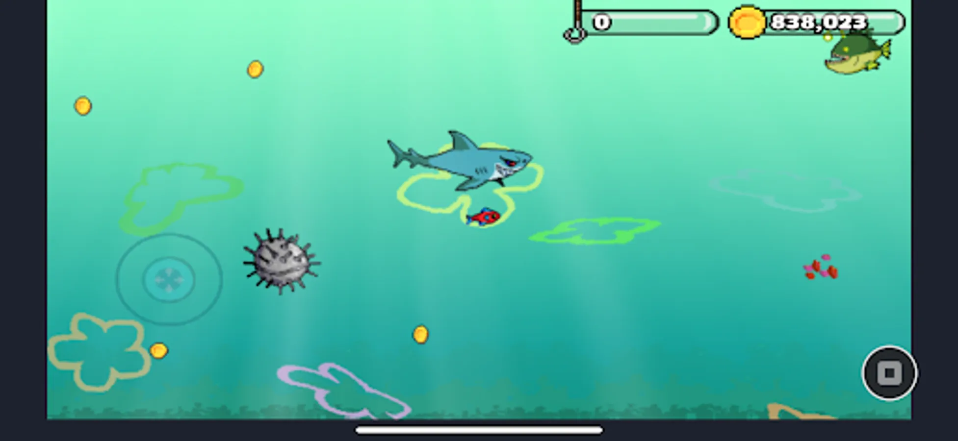 Play as Bate the Fish in Survival mode were you collect all the bait on the map all while avoiding Gillz the shark and avoiding obstacles until you get eaten or play Endless mode were you go in one direction indefinitely until you hit a obstacles or eaten by Gillz.