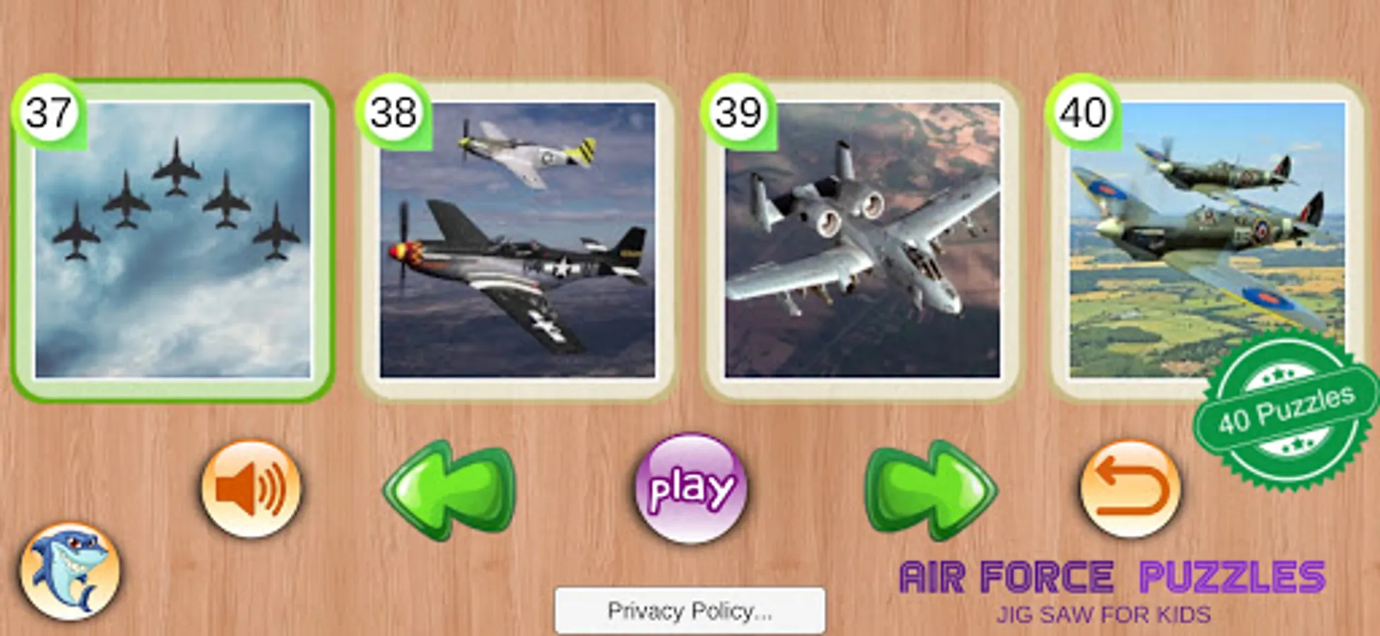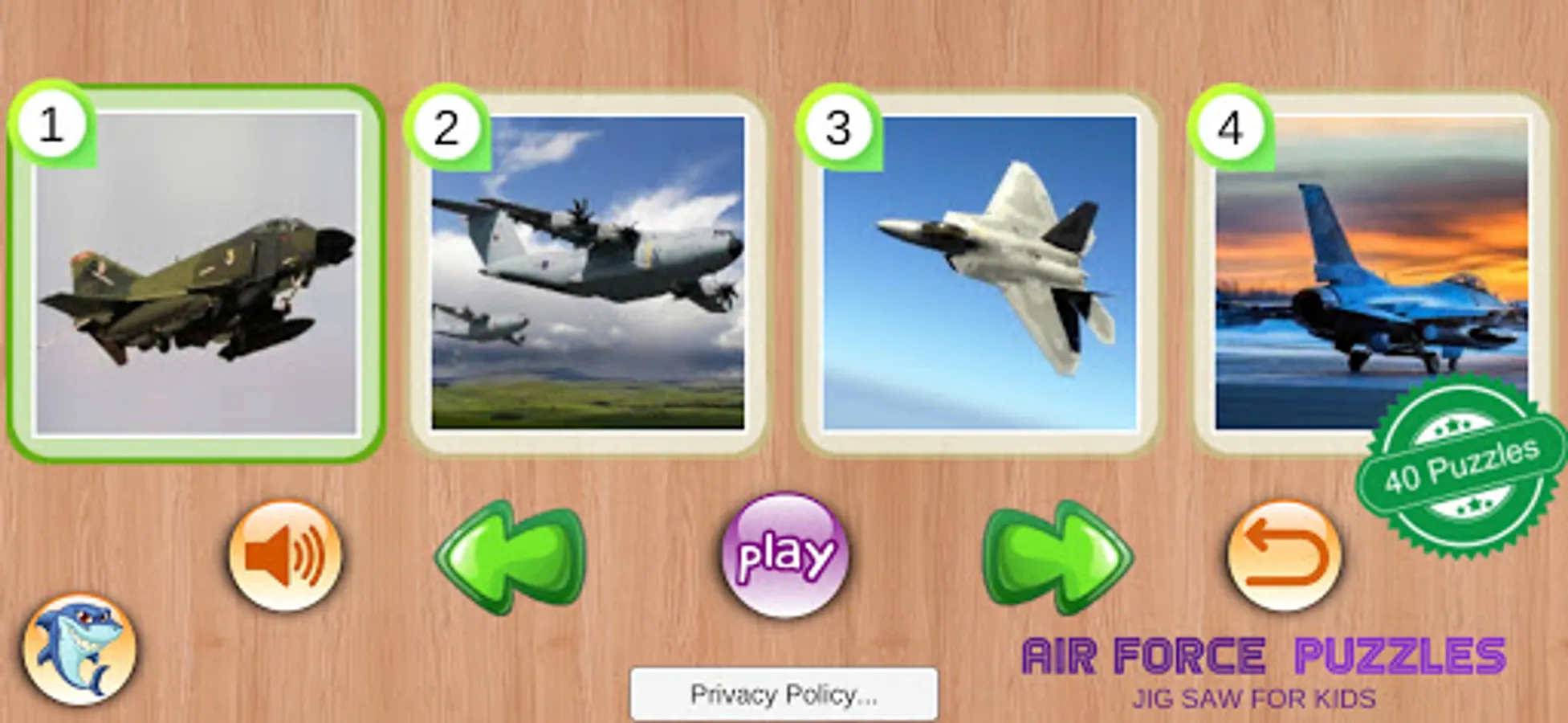 Air Force Puzzles is an excellent easy game way to develop Kids logic skills and help them to recognize shapes and patterns.