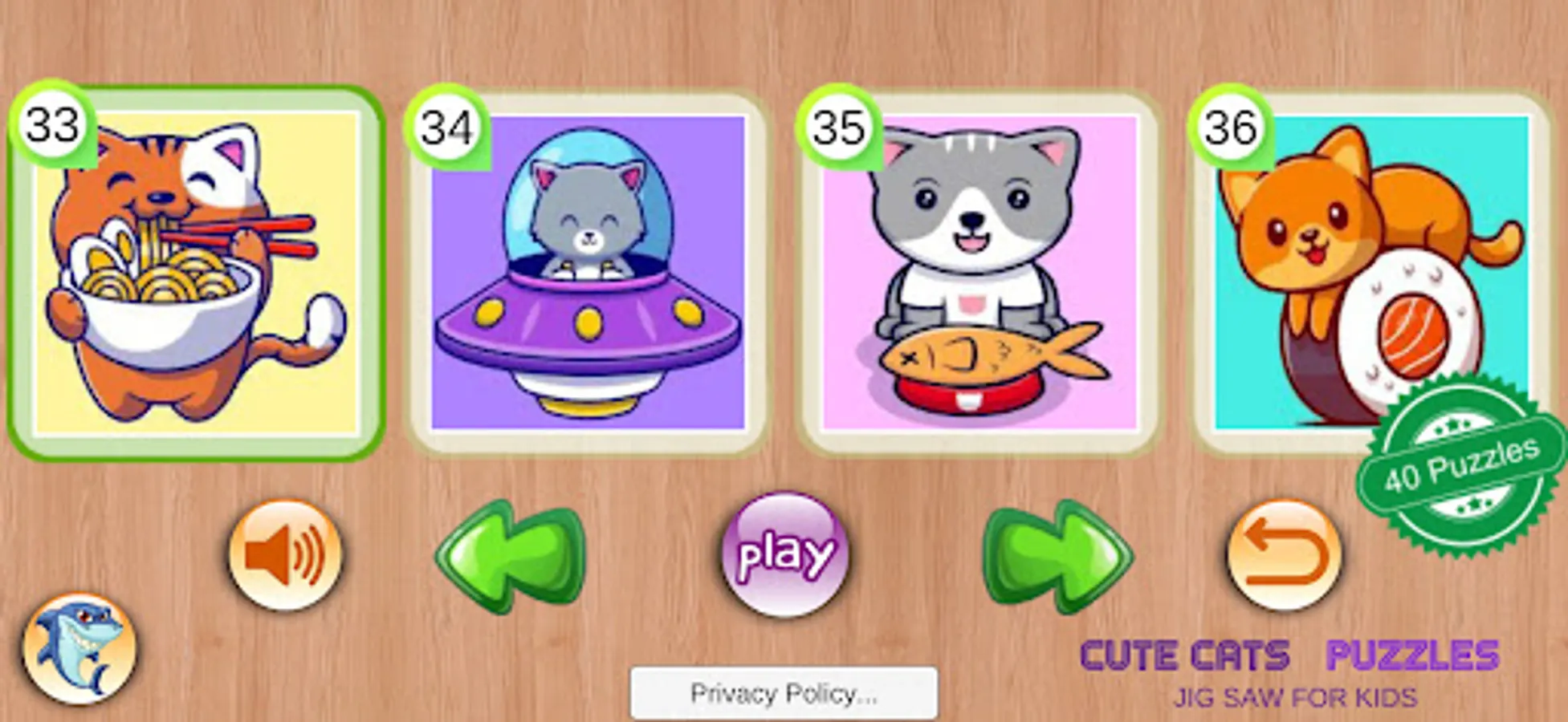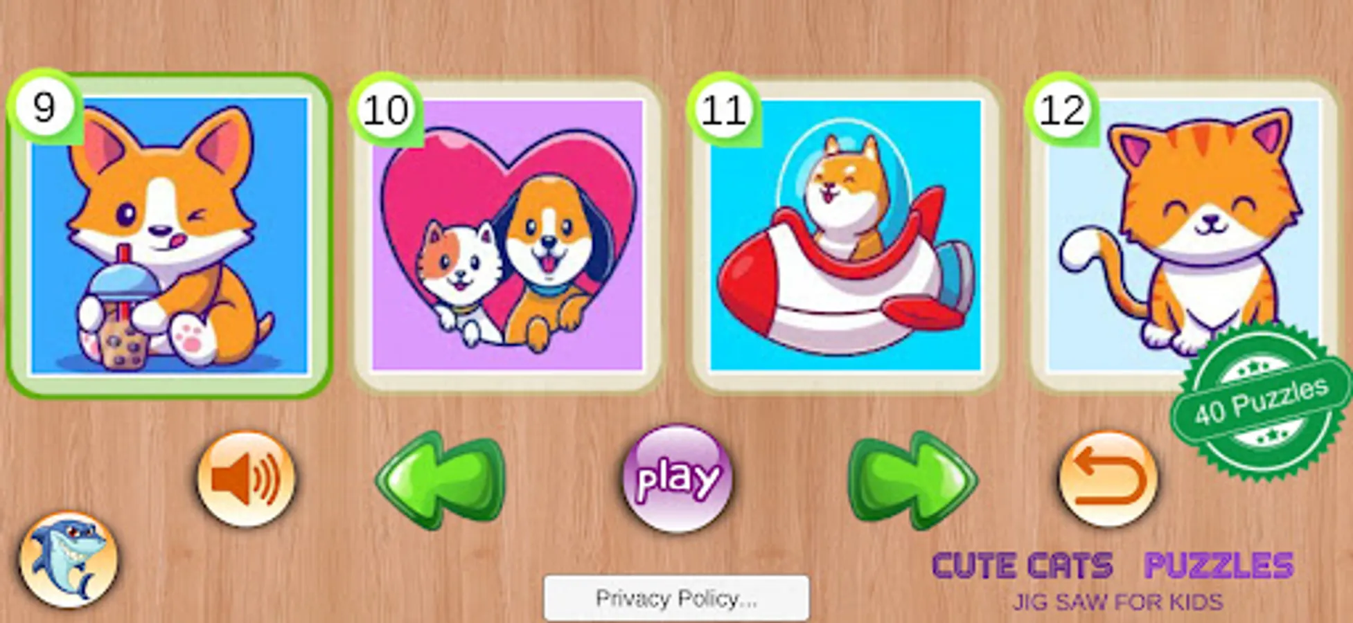 Cute Cats Puzzles is an excellent easy game way to develop Kids logic skills and help them to recognize shapes and patterns.