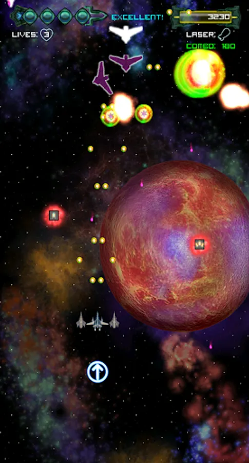 Protect the universe by exploring the alien skies and visiting strange planets.