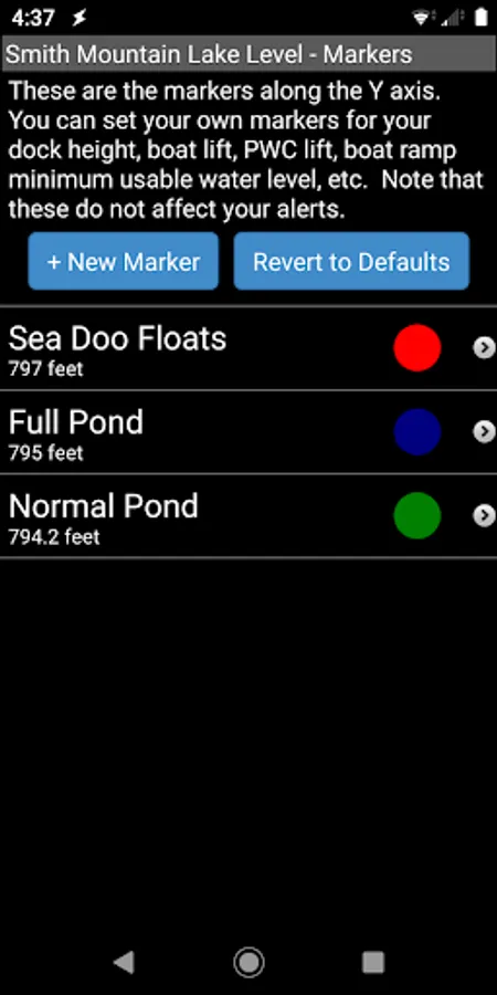 Custom Level Markers! Define your own colored level lines for the chart. Access this feature from the new Settings screen.