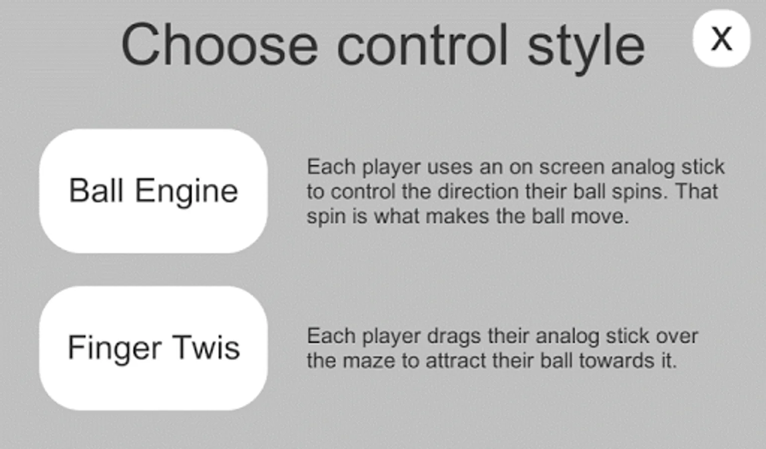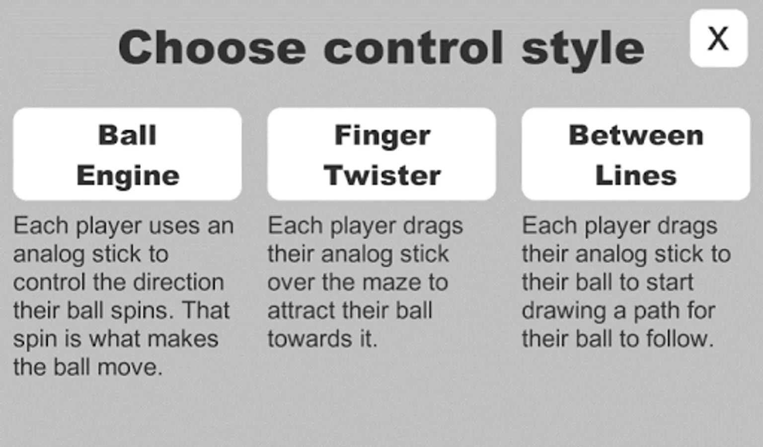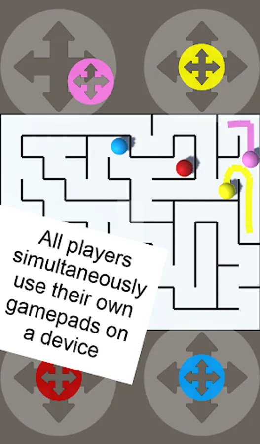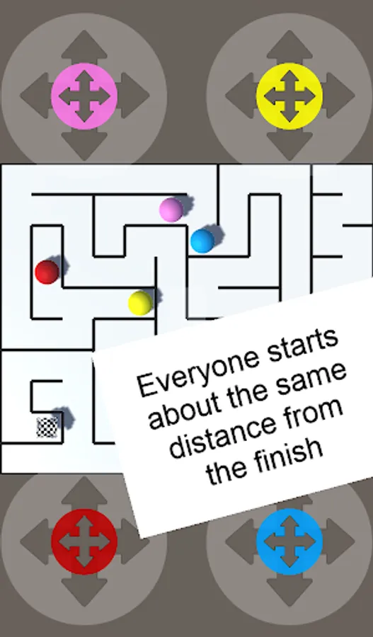 A multi-player maze game for up to 4 people on a single device. Be the first to direct your ball to the checkered flag to win.