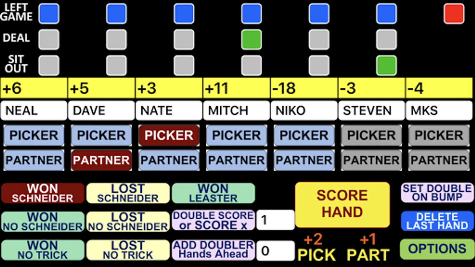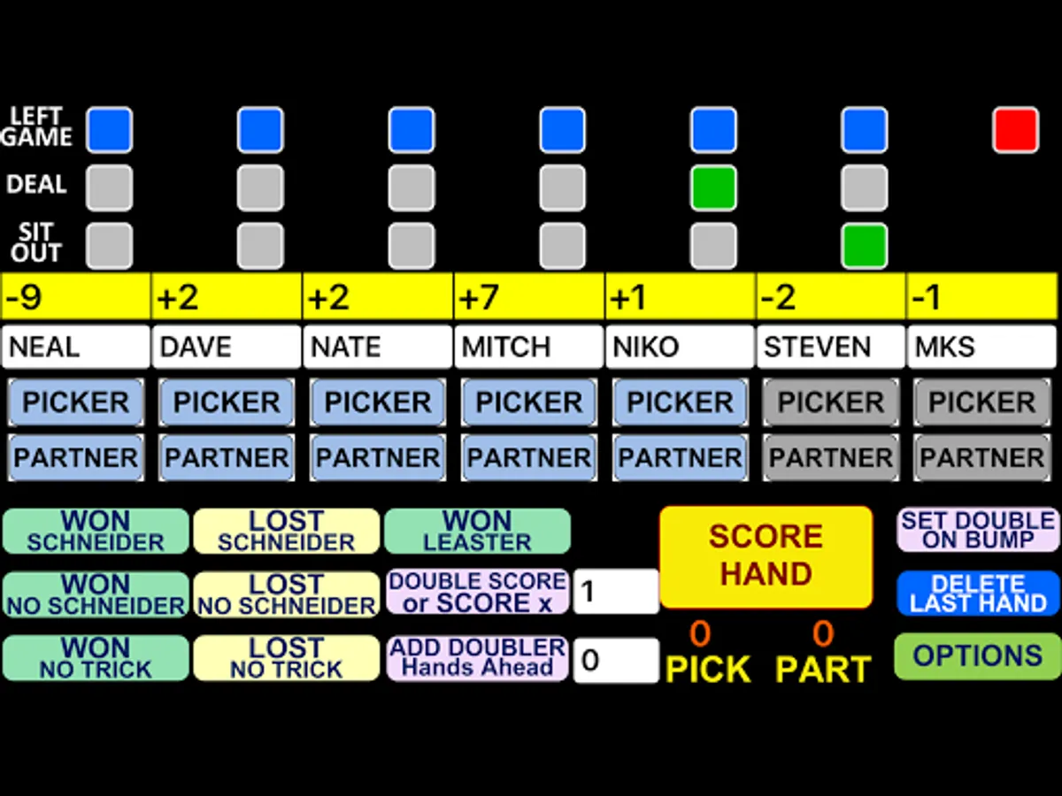 All you have to do is enter player names and then score each hand by choosing a Picker and Partner along with a hand outcome.
