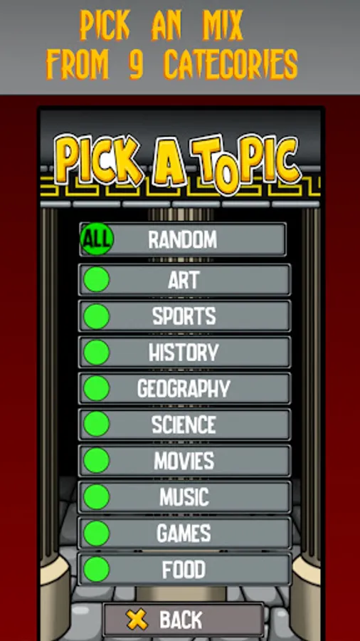 Let Athena guide you through an electrifying experience by randomly selecting questions or choose from 9 captivating topics. Earn higher scores by answering questions swiftly an fast.