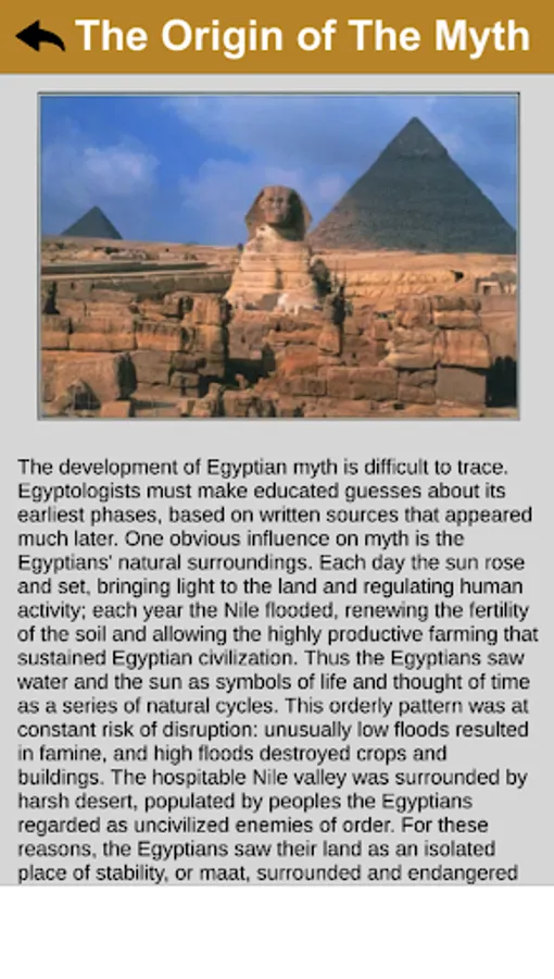 To help you deepen your understanding and appreciation of Egyptian mythology, our app includes detailed commentary and analysis of each myth and legend. You'll learn about the historical context, cultural significance, and symbolic meaning of each story, and gain new insights into the ways in which the ancient Egyptians viewed the world.
