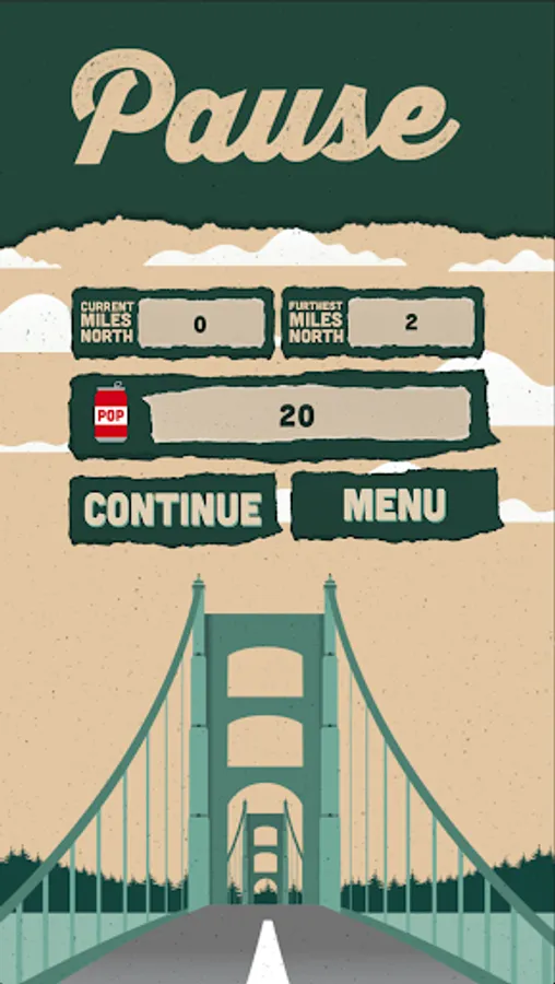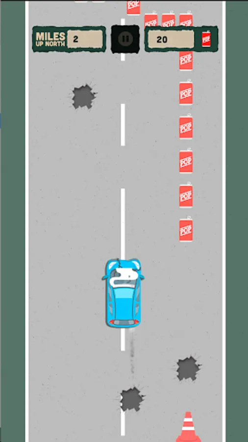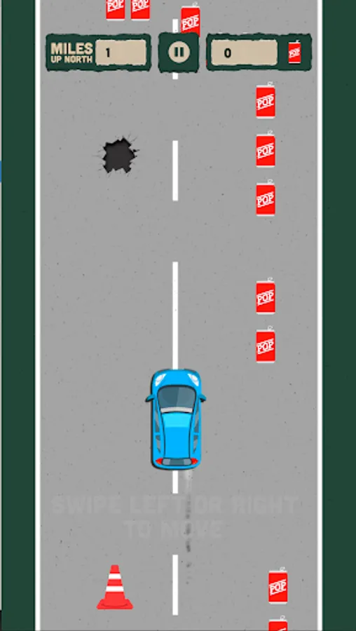 You start off with a car avoiding potholes, construction cones, and deer while collecting pop cans for points. Compete with yourself to see how many miles you can get up north and earn pop cans to unlock new vehicles and levels.