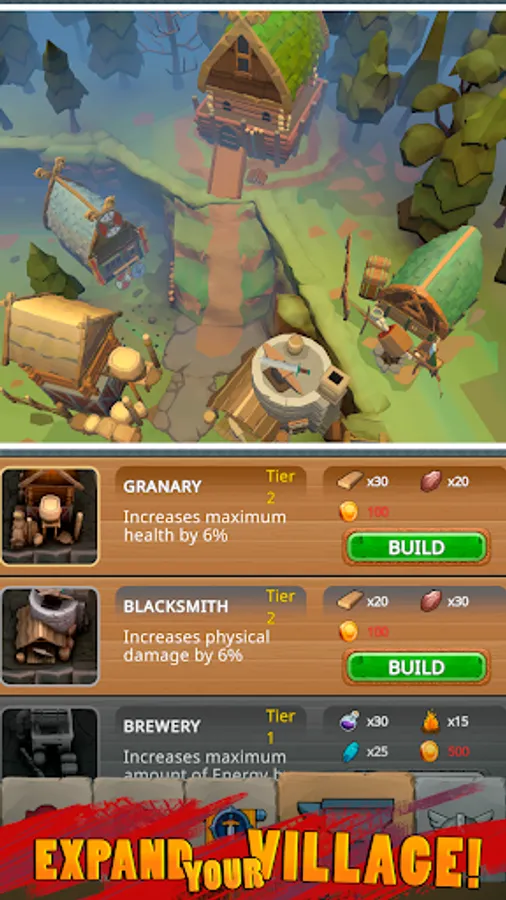 Fight various magic and fantasy creatures to gather resources and experience. Use it to improve your village and unlock new perks & abilities along the way.