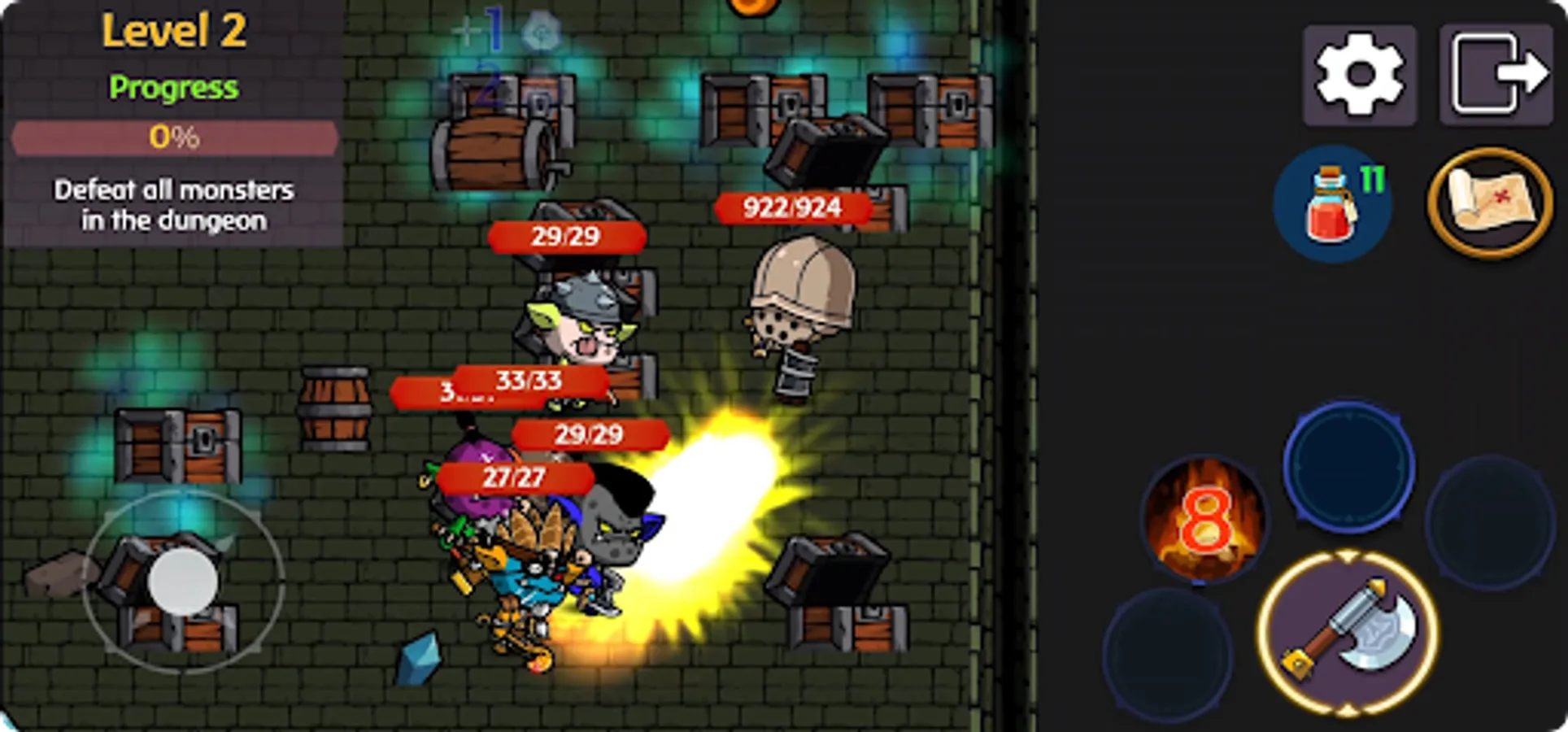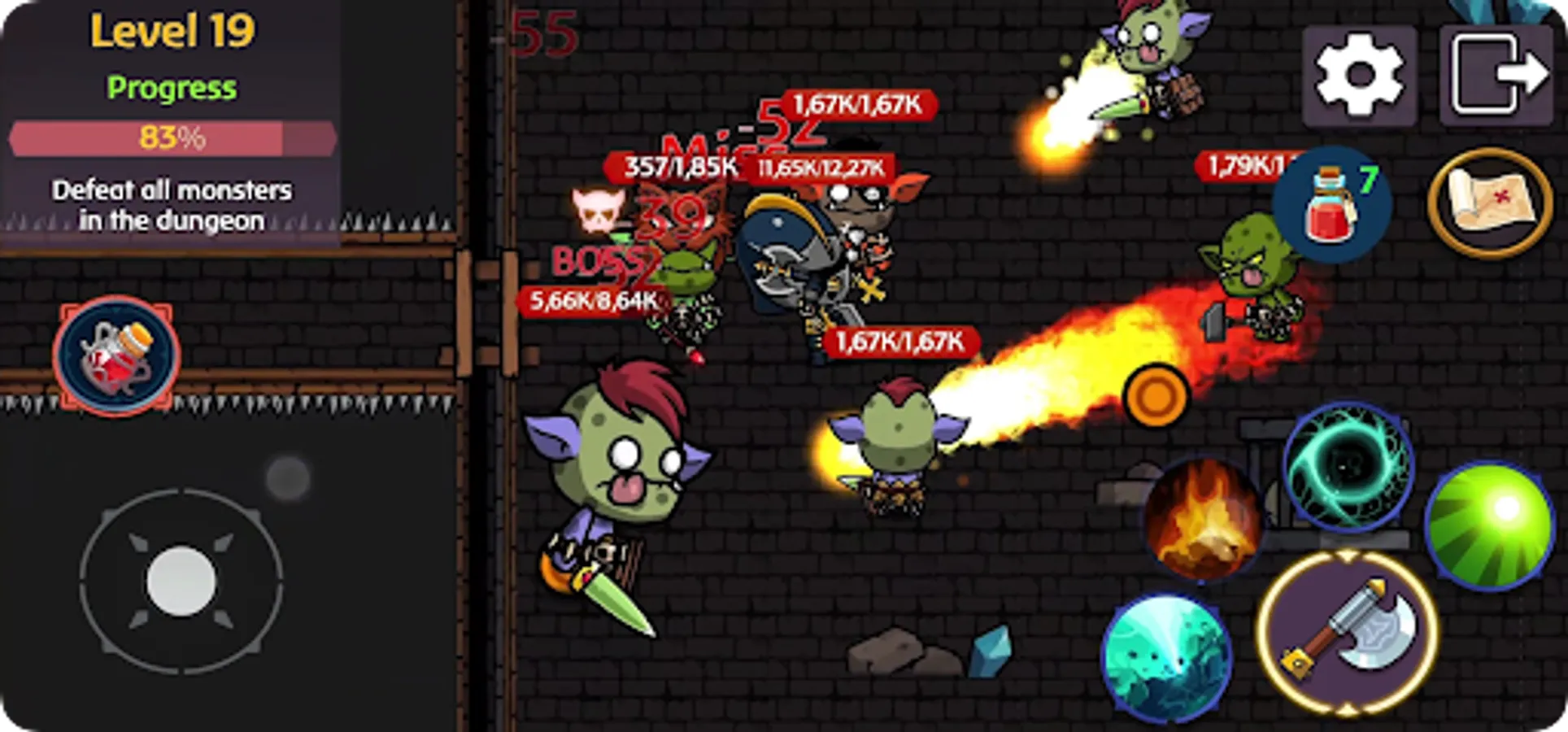 Gather various resources in the dungeons that will be useful for you to create and improve equipment and help make your hero stronger!