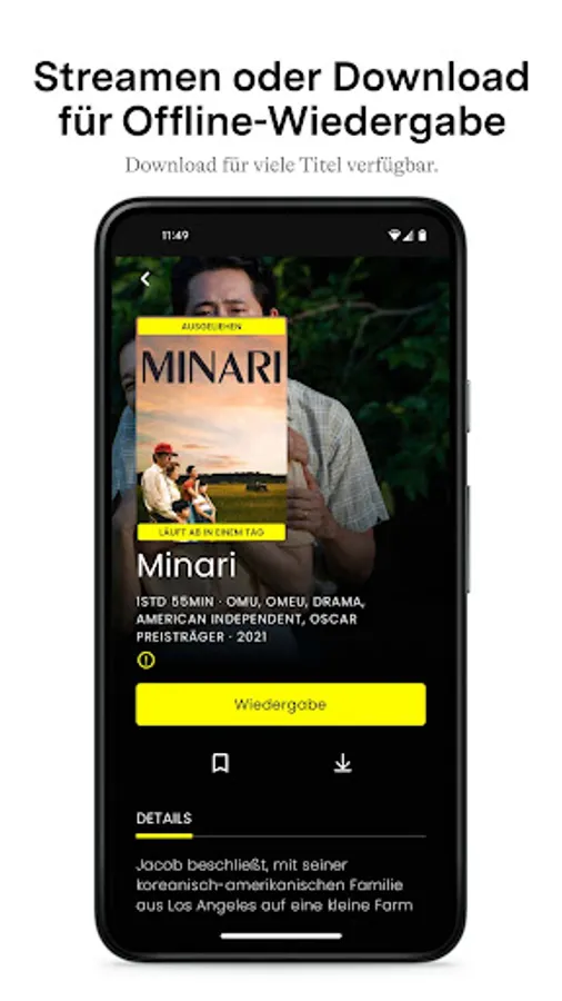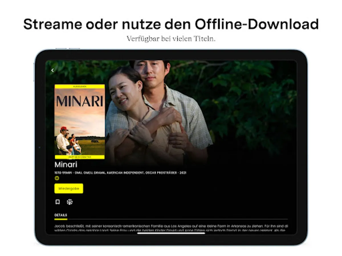 Yorck On Demand offers you our favorite films from the Yorck program at any time and on demand. Every film on Yorck On Demand has been carefully and handpicked by our team. Whether it's award-winning dramas, gripping horror, inspiring documentaries or exciting debuts, when a film is on Yorck On Demand, there's a good reason for it. In addition, you will always see foreign-language films with us in the original sound. The Yorck On Demand app provides access to all of your purchased or rented content from Yorck On Demand on all of your devices. Whether on the TV with friends or on the go on the tablet: from now on you will never be in the wrong movie again.