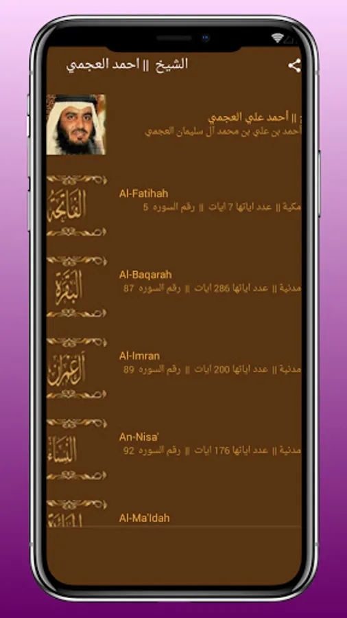 The application of the Noble Qur’an in the voice of Ahmad Al-Ajmi also shows you the duration of each surah and the number of its verses and where they were revealed until you are aware of this.