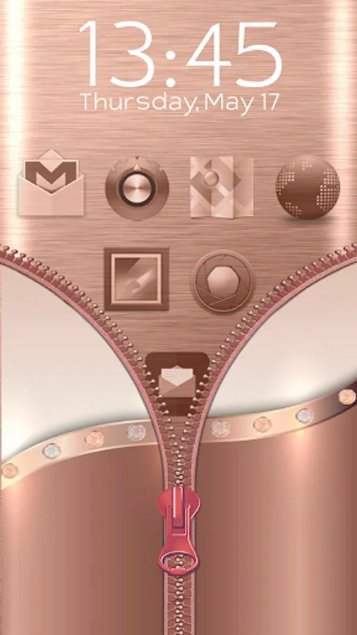 🎆 Finally, we found a fantastic new way for you to turn your lock screen off and on. Cover your phone in “rose gold color” and update your style. The answer was here the whole time! It's our 💛 Shiny Rose Gold Zipper Lock Screen 💛, and there is no better way to transform your phone into privacy guard. It will be the best safety app ever! Shiny “rose gold themes” are here to think about your privacy and security, and nothing else. You don't need to stress about it. This rose gold app will do all the work, and be one of a kind safe lock. 🎆