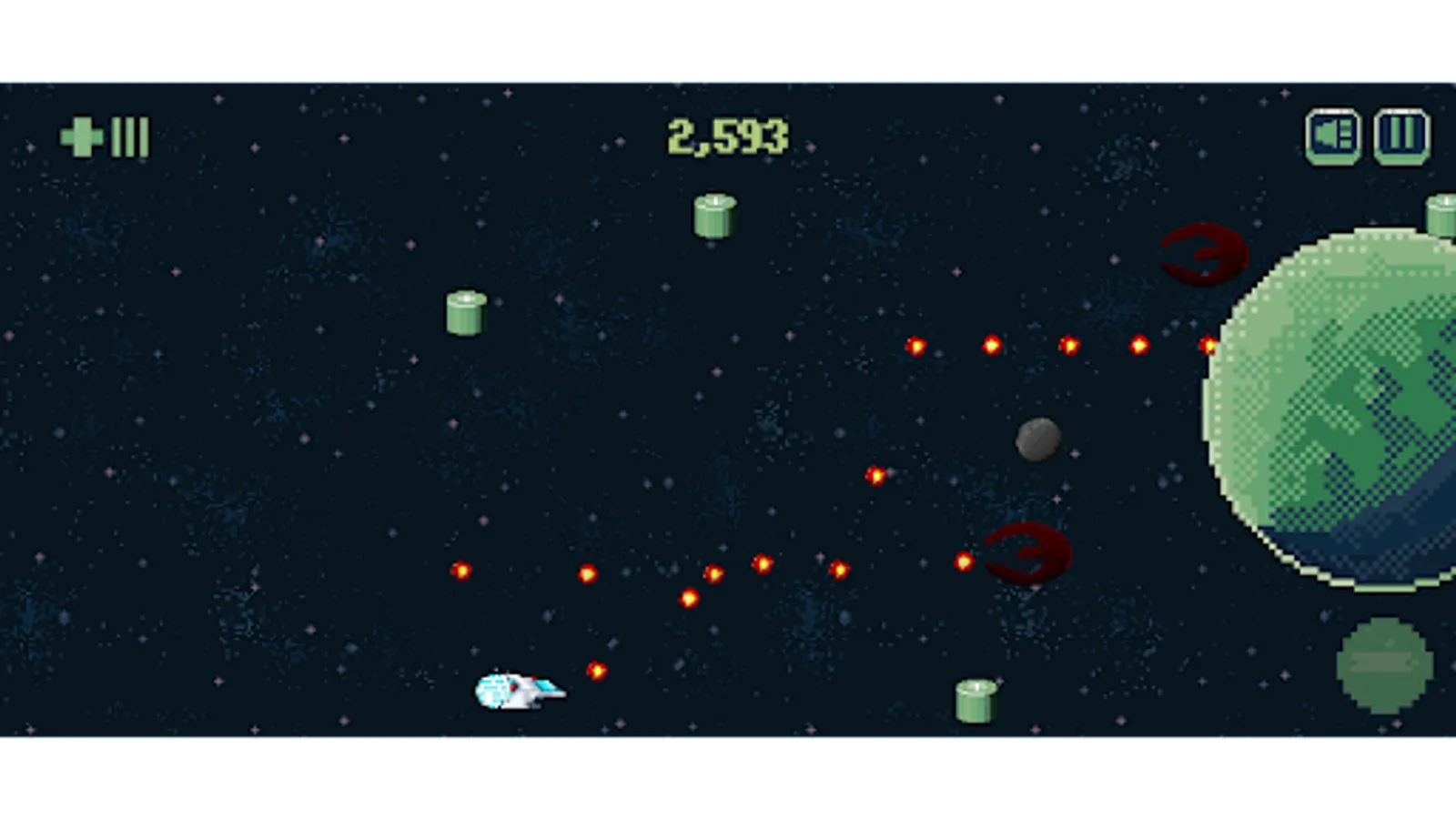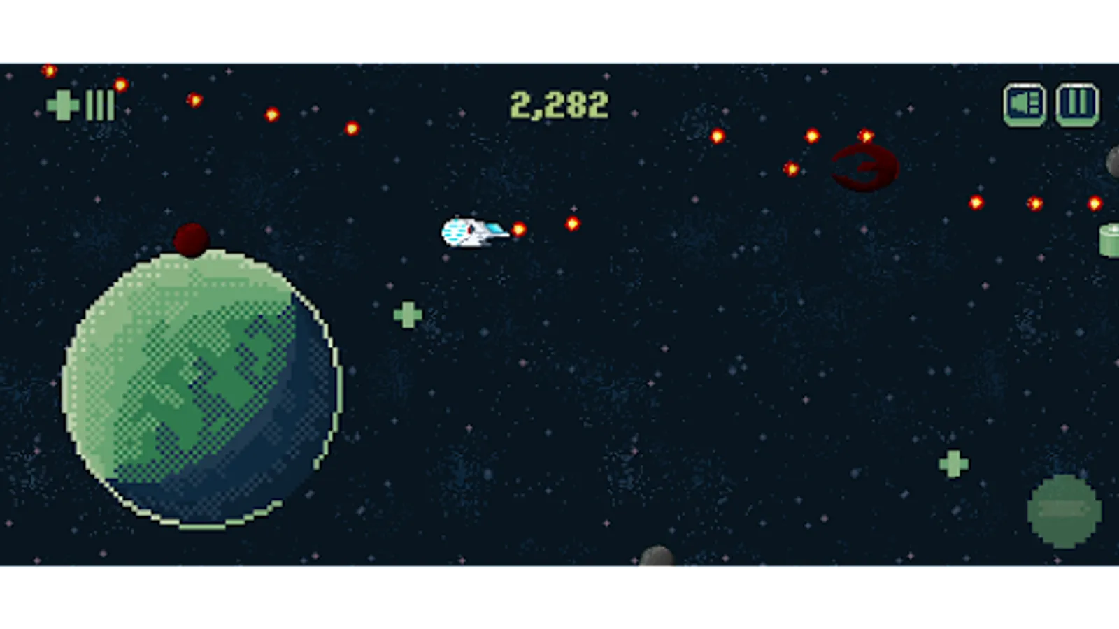 Fight your way through space in this endless runner. Take control of a ship bound for the furthest reaches of the galaxy. Avoid planets and meteorites as you encounter hostile enemy spaceships bent on destroying all that they know.