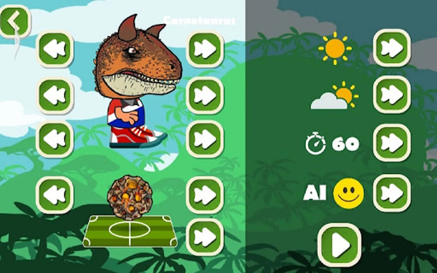 Dino Sports Soccer Match is a free and addicting off-line game. Challenge different dinosaurs for a match and win. This is a free game, and does not support on-line as the moment, it will in the future :)