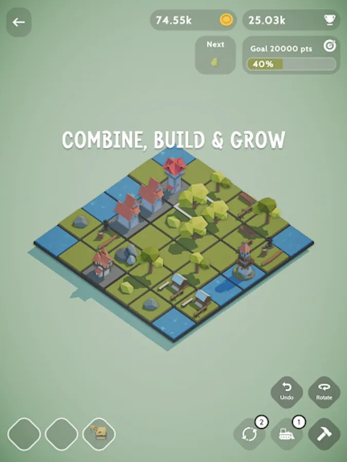 In this captivating puzzle game, your objective is to combine three or more items on the board to construct new structures. Start with humble trees and transform them into majestic houses, and then merge those houses to create even grander residences! Unleash your creativity and witness your town grow exponentially.