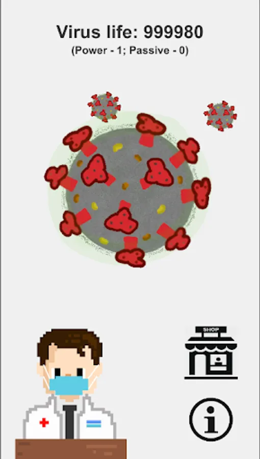 • Click on the virus to reduce the health of the virus, and then buy things that strengthen you and make the virus die.