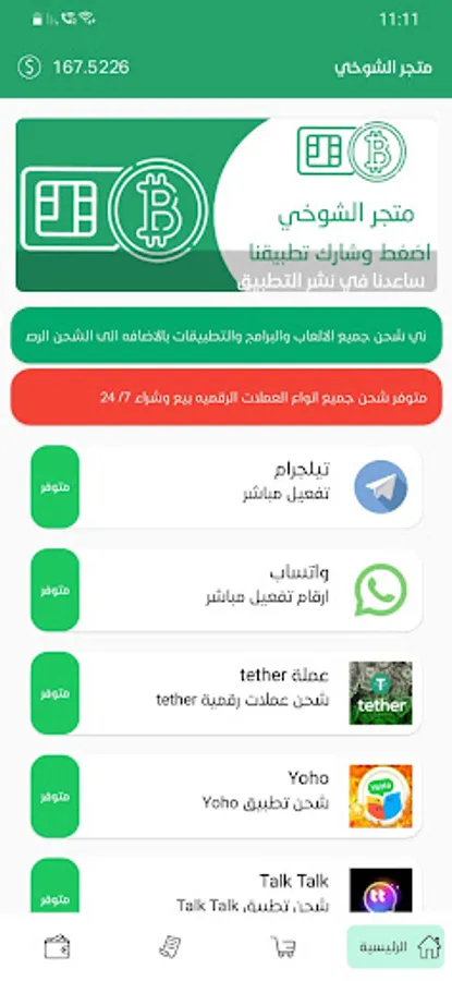 Al Shoukhi Store application gives you the opportunity to activate communication programs and allows you to download programs and games and transfer balance to digital currencies