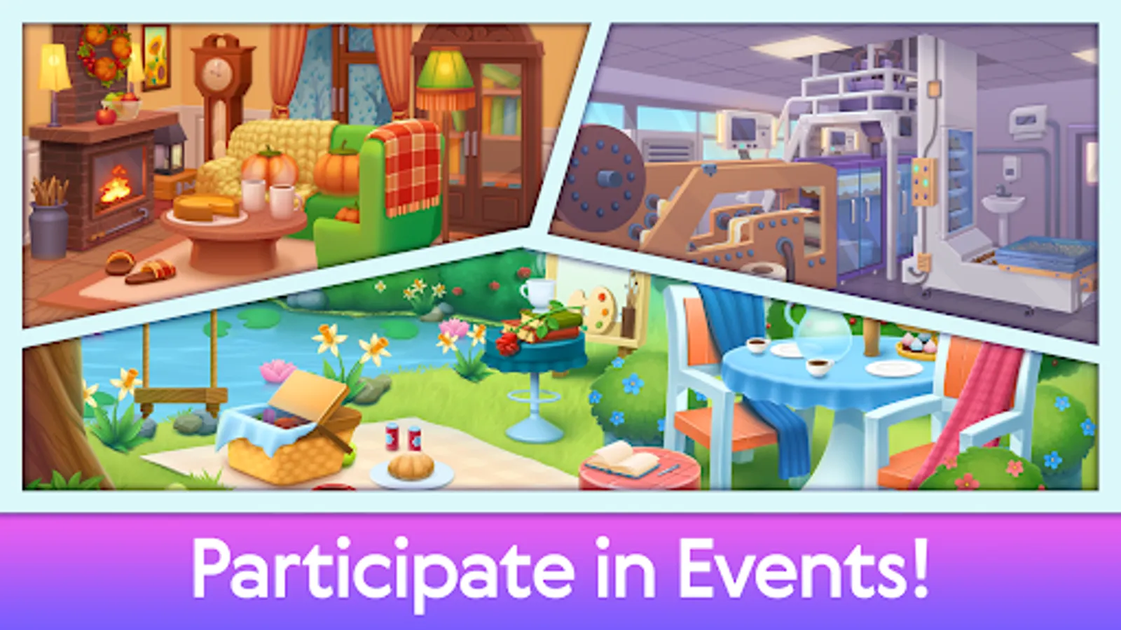 Solve three in a row puzzles, save the estate from demolition, meet interesting characters and help them change their lives. Unravel insidious conspiracies and travel around the world. Become a cool designer and consultant, assemble a dream team and build a global business. Help to build romantic relationships with a handsome coffee shop owner and get involved in it yourself.