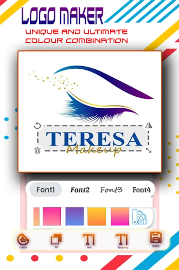 Logo Maker also provides professional photo editing and text editing tools like: Flip, Rotate, 3D Rotate, Resize, Curve, Font , Color, Hue and lots more that you'll need to create beautiful original logos.