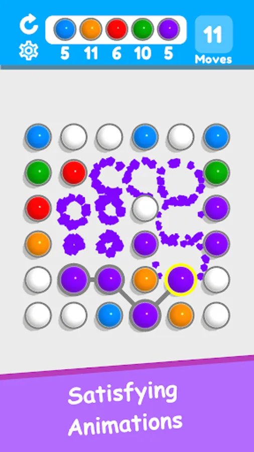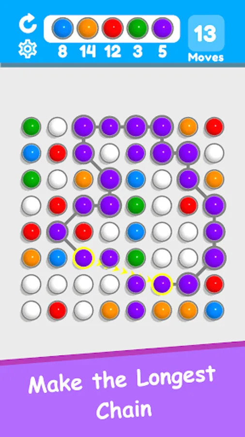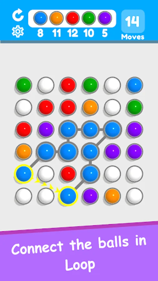 Connect the same color balls and make a loop connection to destroy the balls. Use white color balls to make even longer chains. Collect the required number of balls before the moves runs out to win the level. Tap and swipe to connect balls.