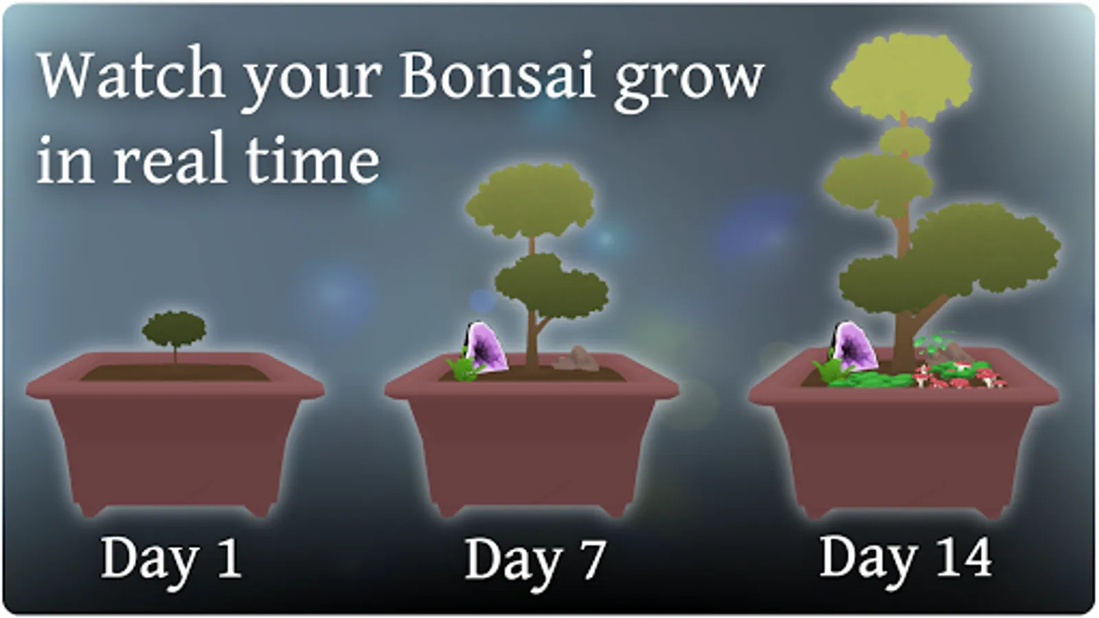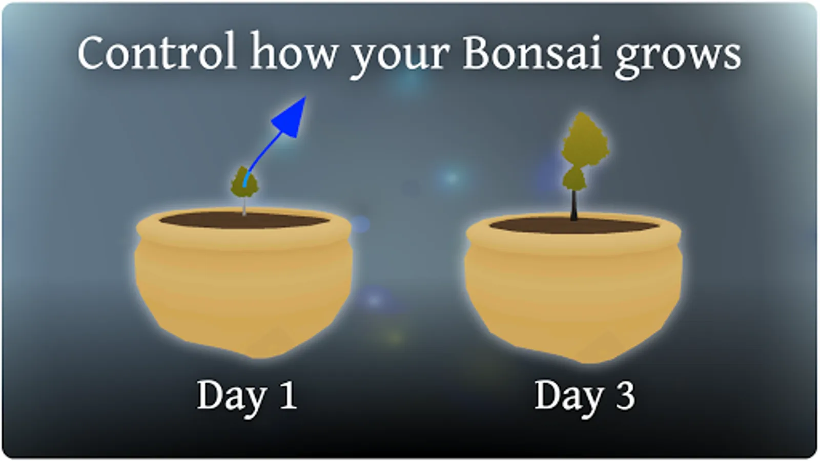 - Shape your bonsai over time by adjusting the direction arrows attached to each branch, then return later to see how it has grown.