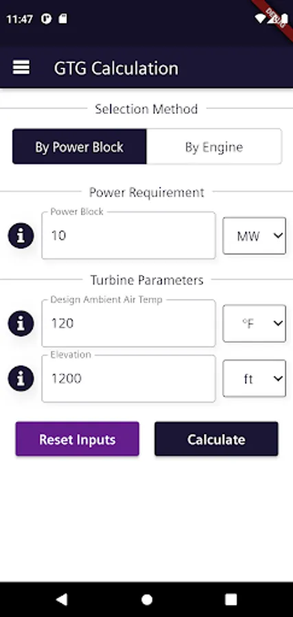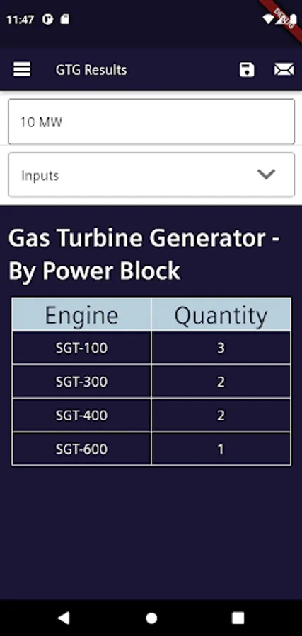 Gas Turbines and Motors selection App.