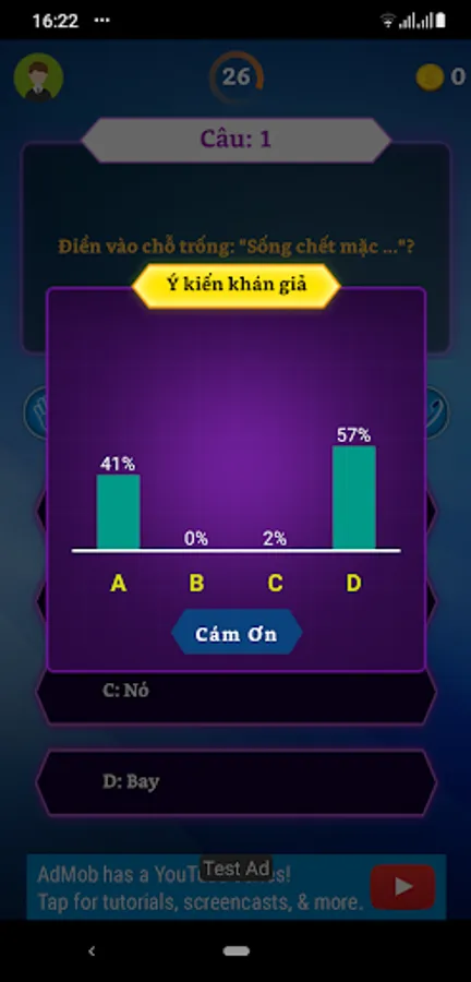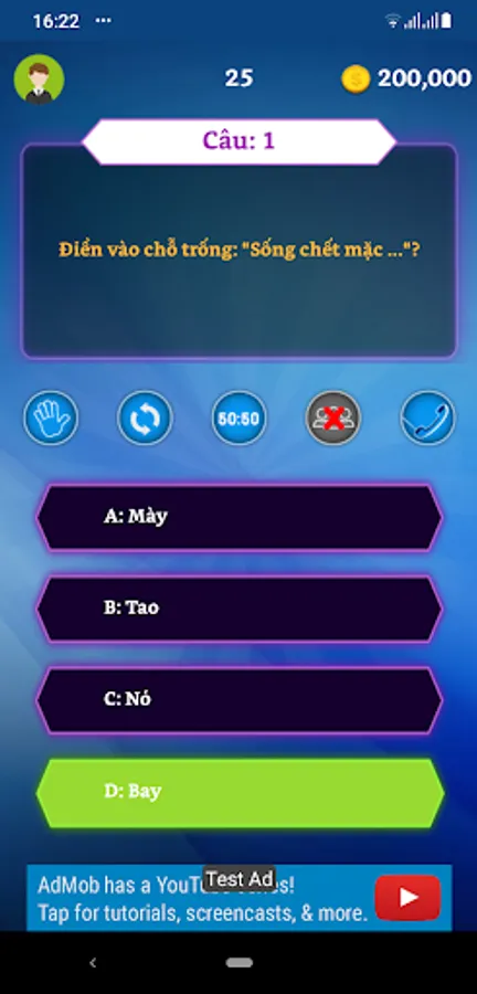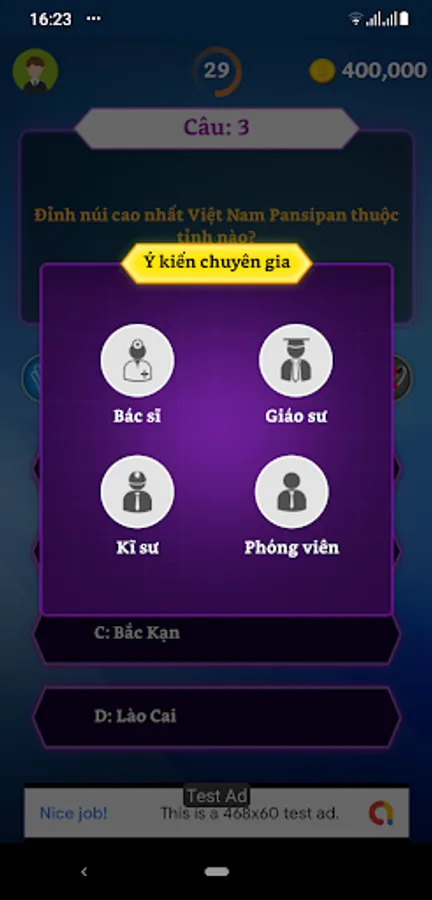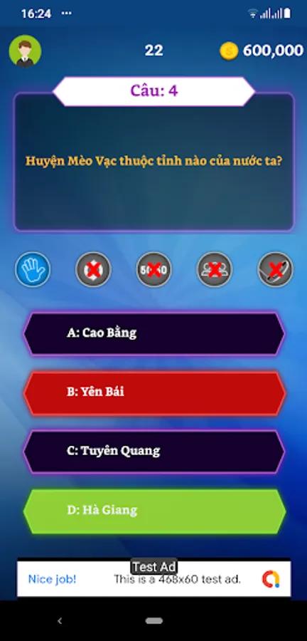 © With questions that increase by level from easy to difficult. To win the Game you will have to pass 3 question marks, respectively, 5, 10, 15. The questions will revolve around social, economic, cultural issues... each question has 4 options. Your task is to choose the most correct answer.