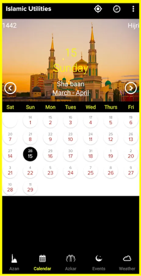 - Monthly calendar with corresponding Hijri date Prayer Times.