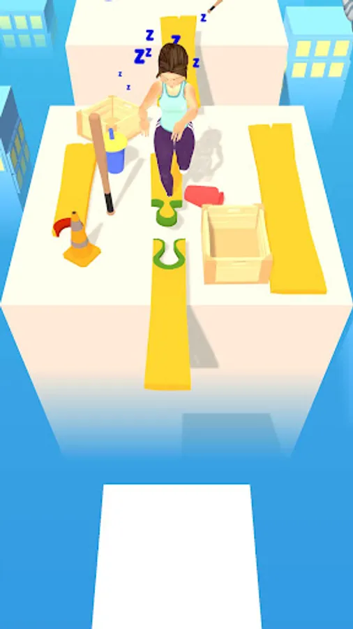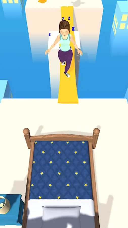 she falls asleep on the go, help the hero get to bed. solve the most interesting puzzles